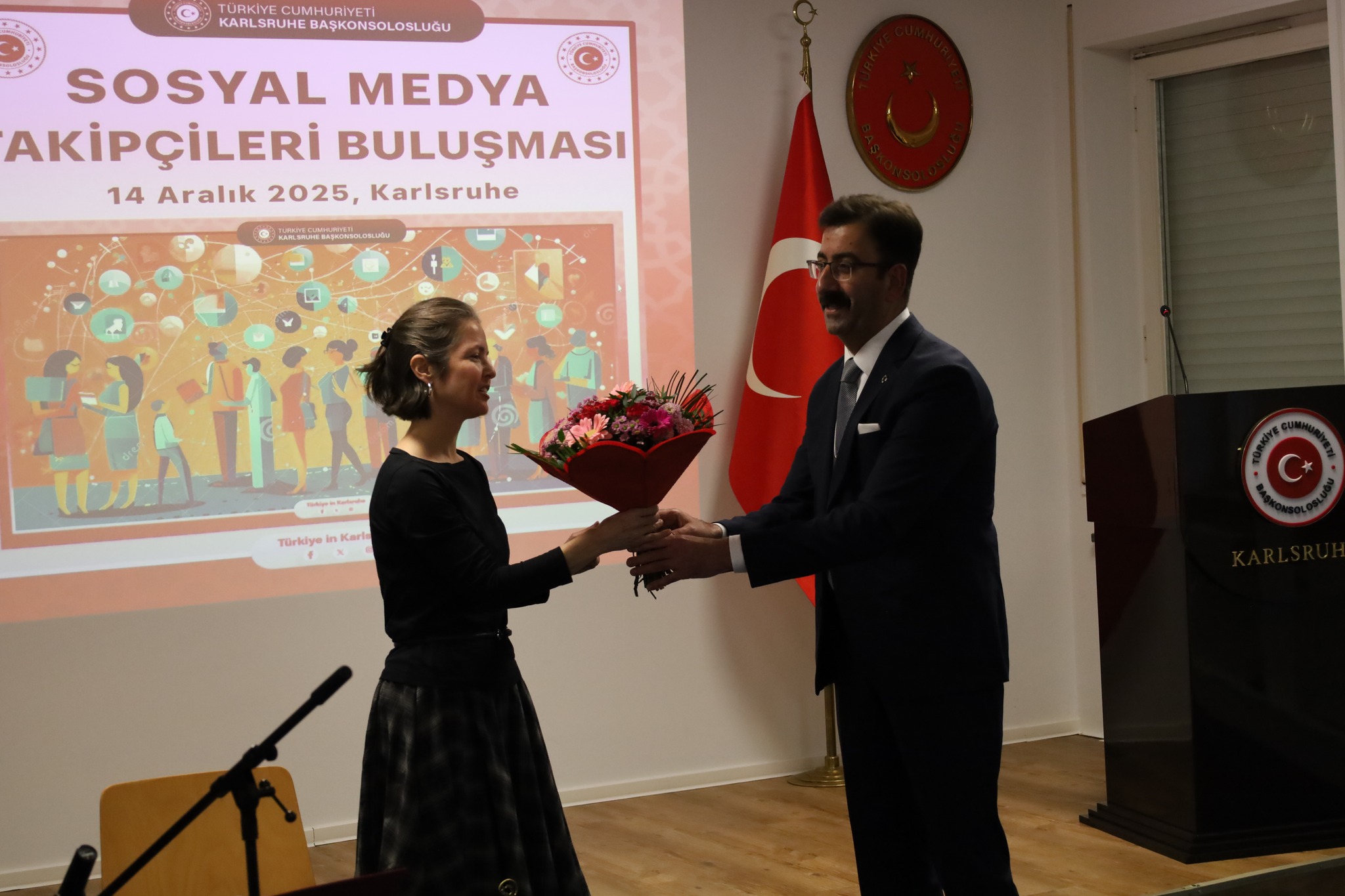 Karlsruhe Başkonsolosu Mahmut Niyazi Sezgin’in ev sahipliğinde, ‘Sosyal Medya Kullanıcıları Buluşması’ adlı bir etkinlik gerçekleştirildi. Programa, Başkonsolosluğun sosyal medya sayfalarını takip eden ve en fazla etkileşim sağlayan 100 kullanıcı davet edildi.